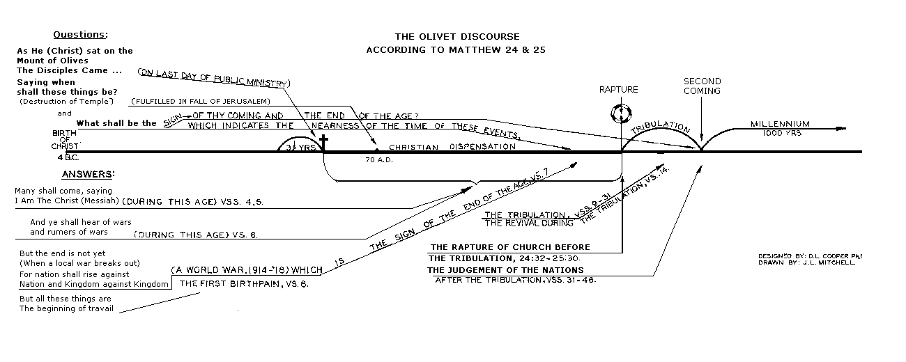 In order that the reader may understand this chart and the passage which it diagrams, I wish to call attention to certain points indicated on this central line. The first to be noted is the time when Jesus spoke the sermon. This was given from the Mount of Olives at the conclusion of the last day of his public ministry.